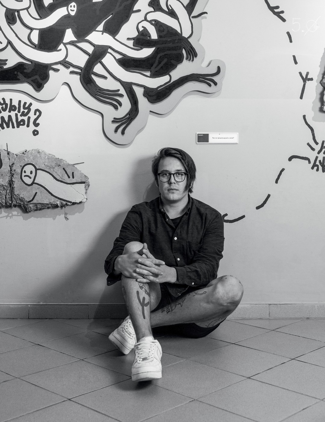 Один из самых неоднозначных башкирских художников сотрудничает с Сергеем Шнуровым, создает постироничные портреты знаменитостей и продает свои работы на крипто-аукционах. В сентябре в галерее X-Max прошла его выставка «Наскальники».