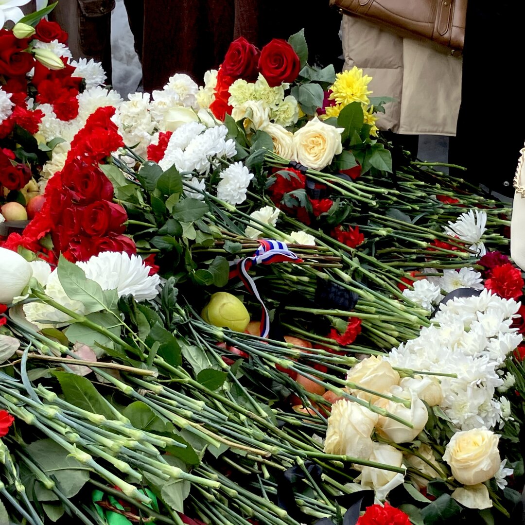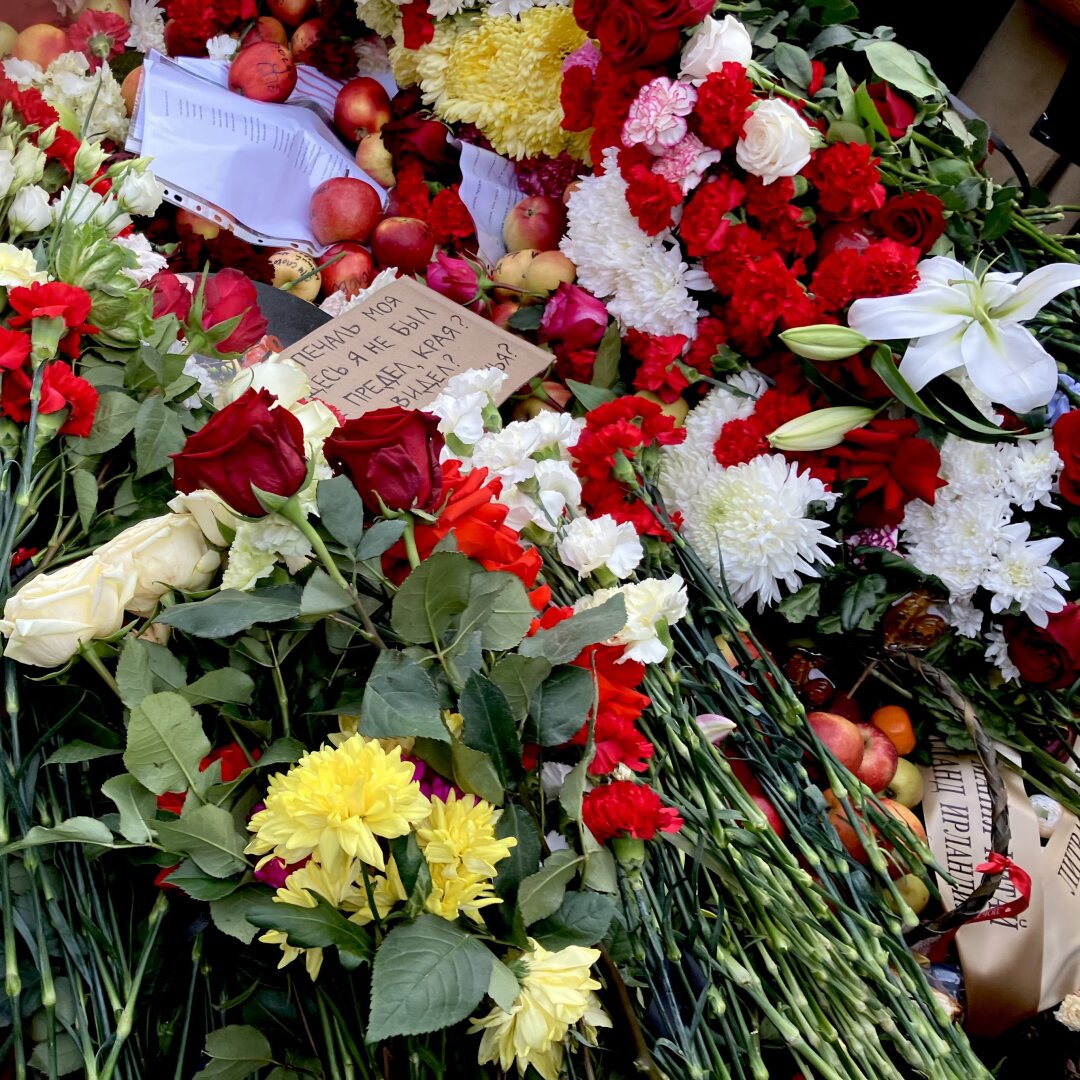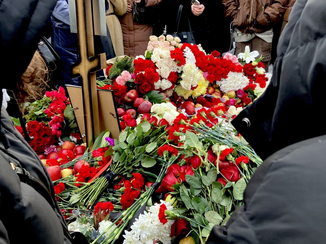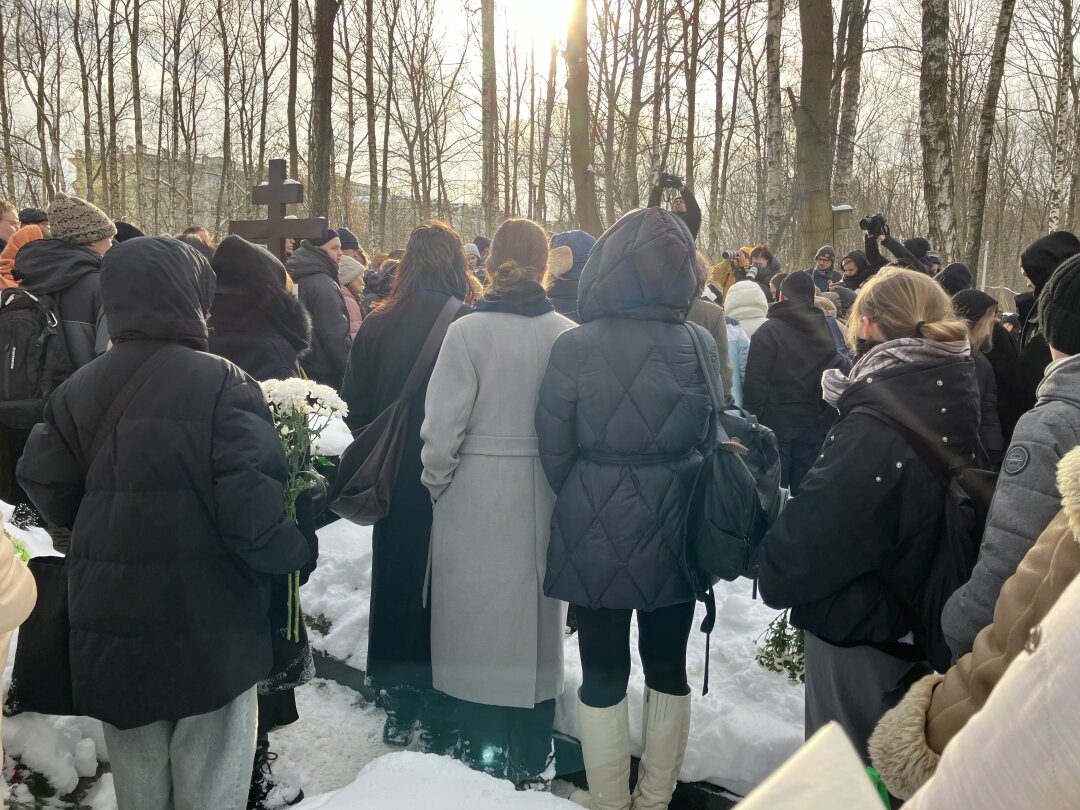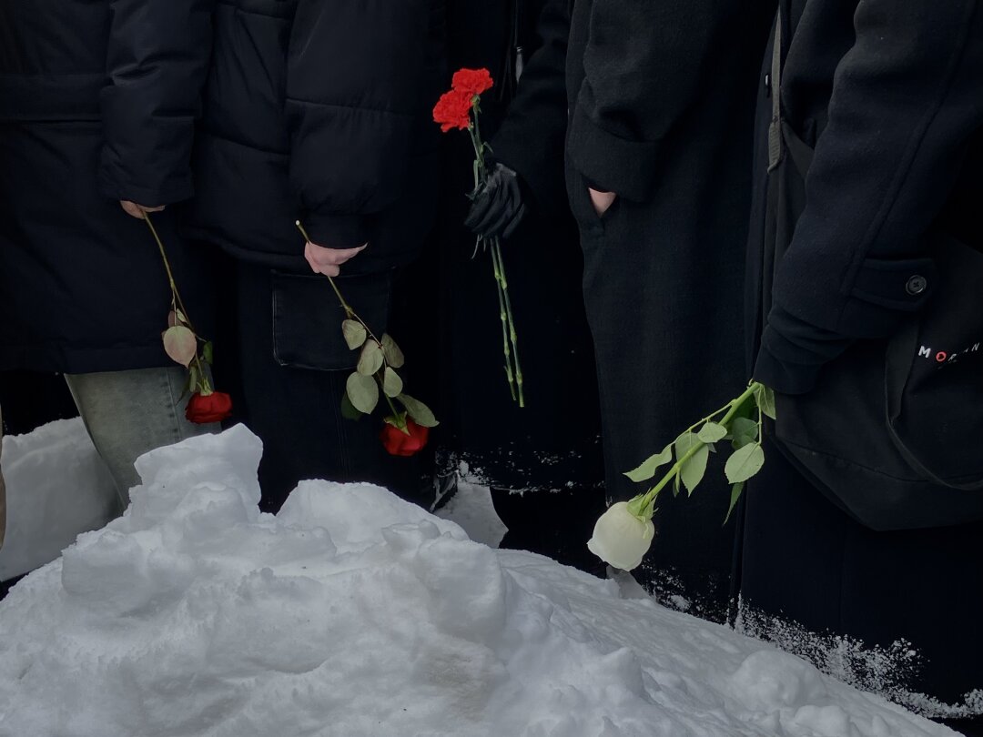Мимо бесконечно несут цветы: в 10:59 очередь в Феодоровский собор уже достигает вывески «36,6» на доме №2 Полтавском проезде, а к 11:37 тянется далеко за угол. Проводить Николая Комягина собираются цветноволосые нефоры-зумеры и нормкорные миллениалы, дошкольники-близняшки в одинаковых куртках, курсанты в форме. Когда идешь вдоль очереди к концу, люди пристально смотрят тебе в глаза — говорят, сам Комягин часто так делал, когда поклонники встречали его на улицах Петербурга.