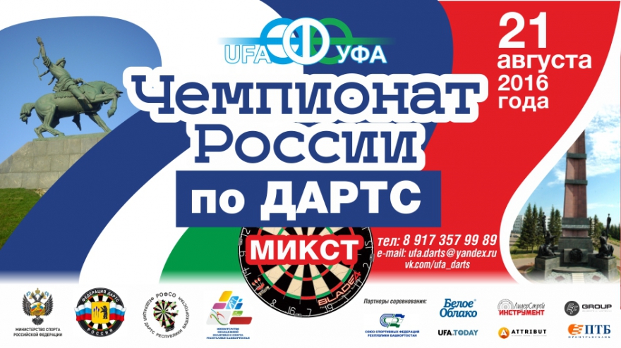 Федерация дартс Республики Башкортостан совместно с Комитетом по физической культуре и спорту Администрации с 19 по 21 августа организует чемпионат России «микст» и всероссийские соревнования Кубок Уфы по дартс.