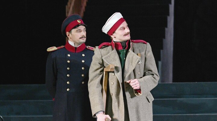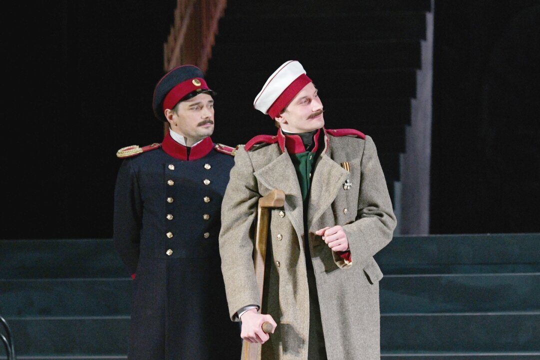 В Русдраме все по-другому – спектакль состоит из четырех частей, соответствующих частям романа: «Максим Максимович», «Тамань», «Княжна Мери» и «Фаталист». Образ Печорина, который зритель видит глазами штабс-капитана Максима Максимовича, углубляется и масштабируется через любовь черкешенки Бэлы, столкновение с контрабандистами в Тамани, отношения с княжной Мери, дуэль с Грушницким, беседы о фатализме с Вуличем.