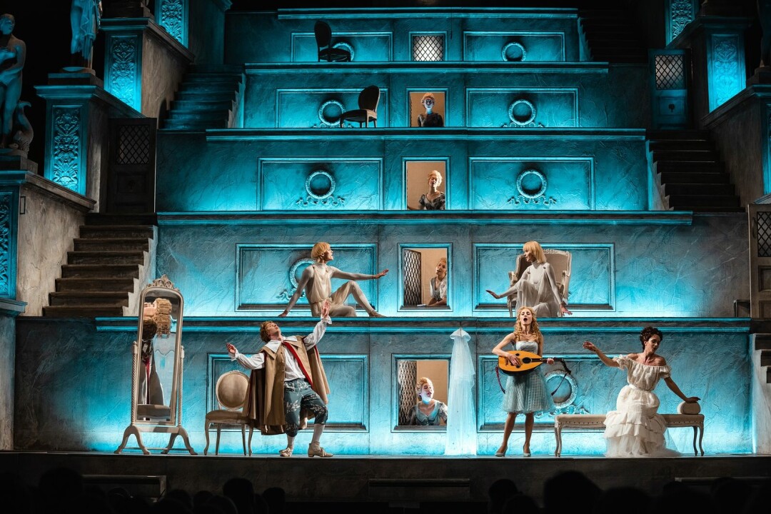 На большом экране покажут спектакль Московского театра имени Пушкина в постановке Евгения Писарева. Главные роли в нем исполнили Сергей Лазарев, Александр Арсентьев, Анна Бегунова, Виктория Исакова, Валерия Ёлкина и Никита Пирожков.