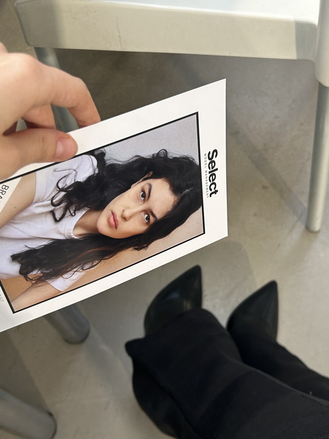 Первые снепы мне помогла сделать подруга: мы вместе посмотрели в интернете, как они выглядят и сделали фото просто на телефон. Снепы — это такие фотографии модели, которые агентства рассылают другим агентствам или клиентам по запросу. Обычно это снимки на белом фоне, где модель одета в обтягивающую черную одежду, без макияжа и с распущенными волосами.