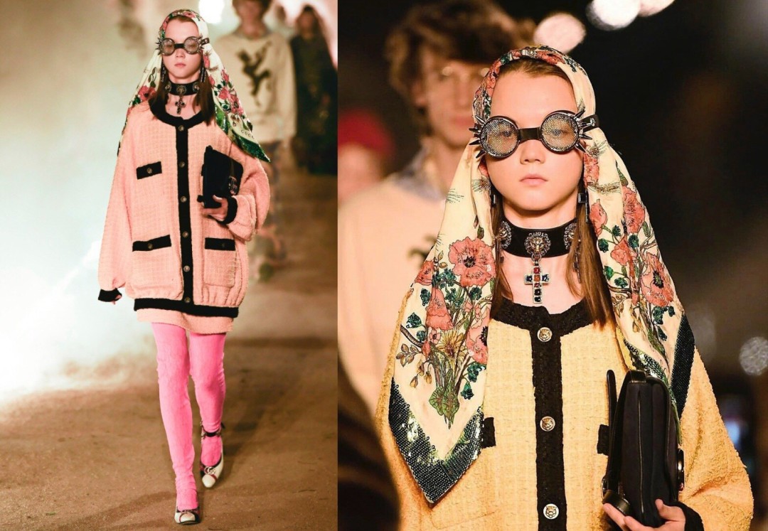 За шторой оказалась огромная комната с аксессуарами, сумками, украшениями – все просто сияло. Так хотелось остановиться и все разглядеть, но мне нужно было лишь пройтись. Передо мной была черная ковровая дорожка и в ее конце сидели главные стилисты, кастинг-директор и Алессандро Микеле. Они были такими спокойными и невозмутимыми, что мне тоже передались эти чувства, а мои тревога и волнение – все, что секунду назад меня дергало – будто растворились. Я прошлась туда-сюда, а когда пошла в обратную сторону, оказалось, что позади меня стоит огромное зеркало, и мне удалось посмотреть на себя со стороны. Мне понравилось! После меня сфотографировали, попросили переодеться в желтый костюм с розовыми колготками (спойлер: в которых я потом и шла на показе!).