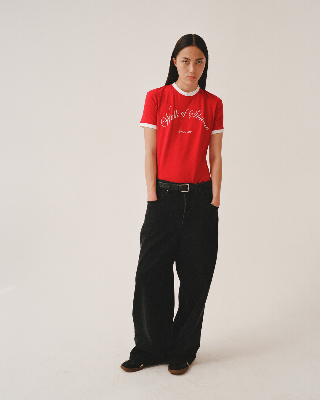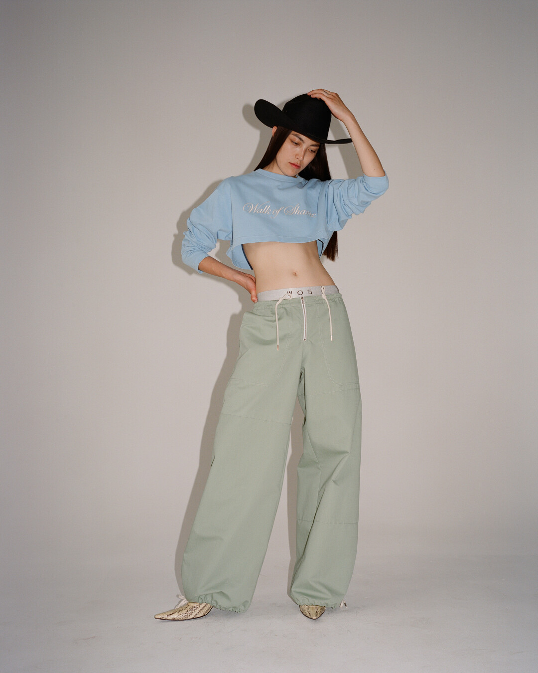 Коллекция сохраняет традиционные для WOS силуэты и детали, но представляет их по-новому. Так, ставший для марки знаковым принт с цветком курая в будущем сезоне выглядит как зеркальное отражение самого себя, а надпись Walk of Shame на бейсболках и футболках дополнена годом создания бренда. Жакеты и рубашки обзавелись укороченными версиями, в коллекции снова появились брюки-карго, а юбки в пайетках стали еще более сексуальными. Любимые всеми платья-сорочки изменили крой и теперь позволяют демонстрировать осанку благодаря полностью открытой спине и бретелькам-ниточкам – идеальный наряд, чтобы ностальгировать по началу нулевых.