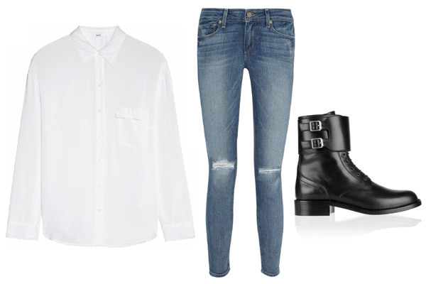 Рубашка Splendid, 5 400 рублей; джинсы Paige, ботинки Saint Laurent