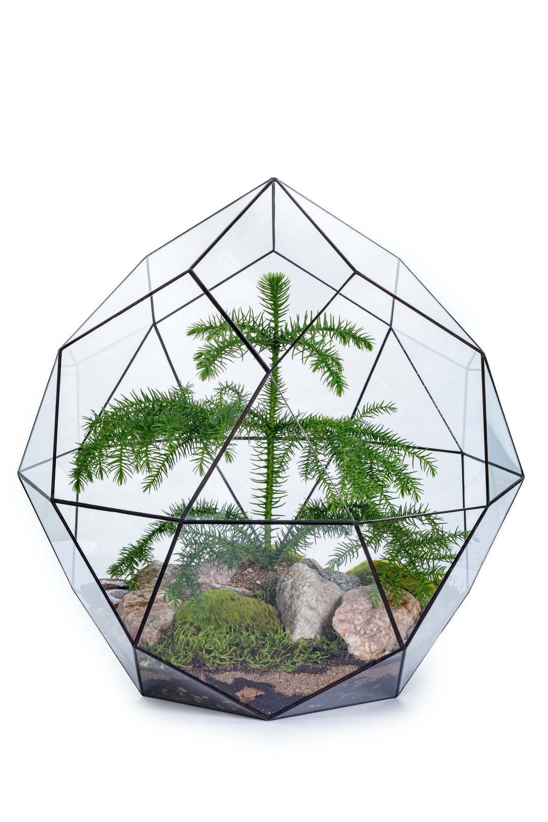 Я за живые елки. Но не за то, чтобы каждый год рубить деревья. Мне нравится европейская традиция выращивать дома небольшую елку и каждый год наряжать ее на праздник. Единственное, нужно учитывать, что не все растения могут расти в домашней атмосфере: для каких-то воздух может оказаться слишком сухим, для других – слишком теплым. Поэтому прекрасная альтернатива елке – араукария, вечнозеленое хвойное растение, которое прекрасно будет расти дома, в горшке. А мой идеальный новогодний декор – это флорариум с живой хвойной араукарией, оформленный натуральными камнями.