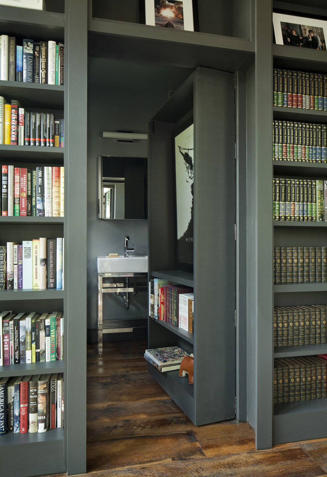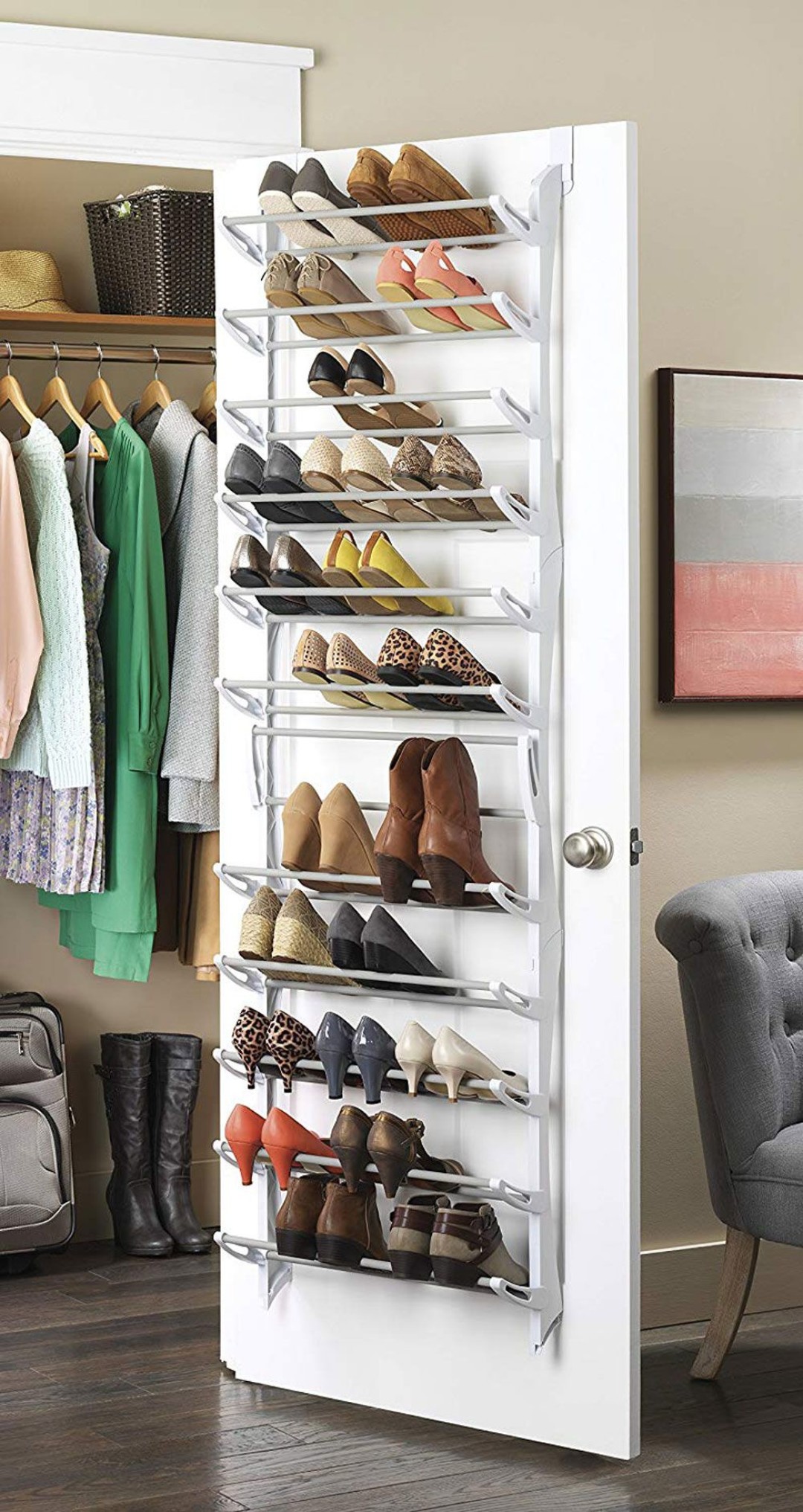 Систему хранения можно организовать даже с помощью межкомнатной двери. Стоит только установить на нее полки или повесить специальные держатели во всю высоту двери.