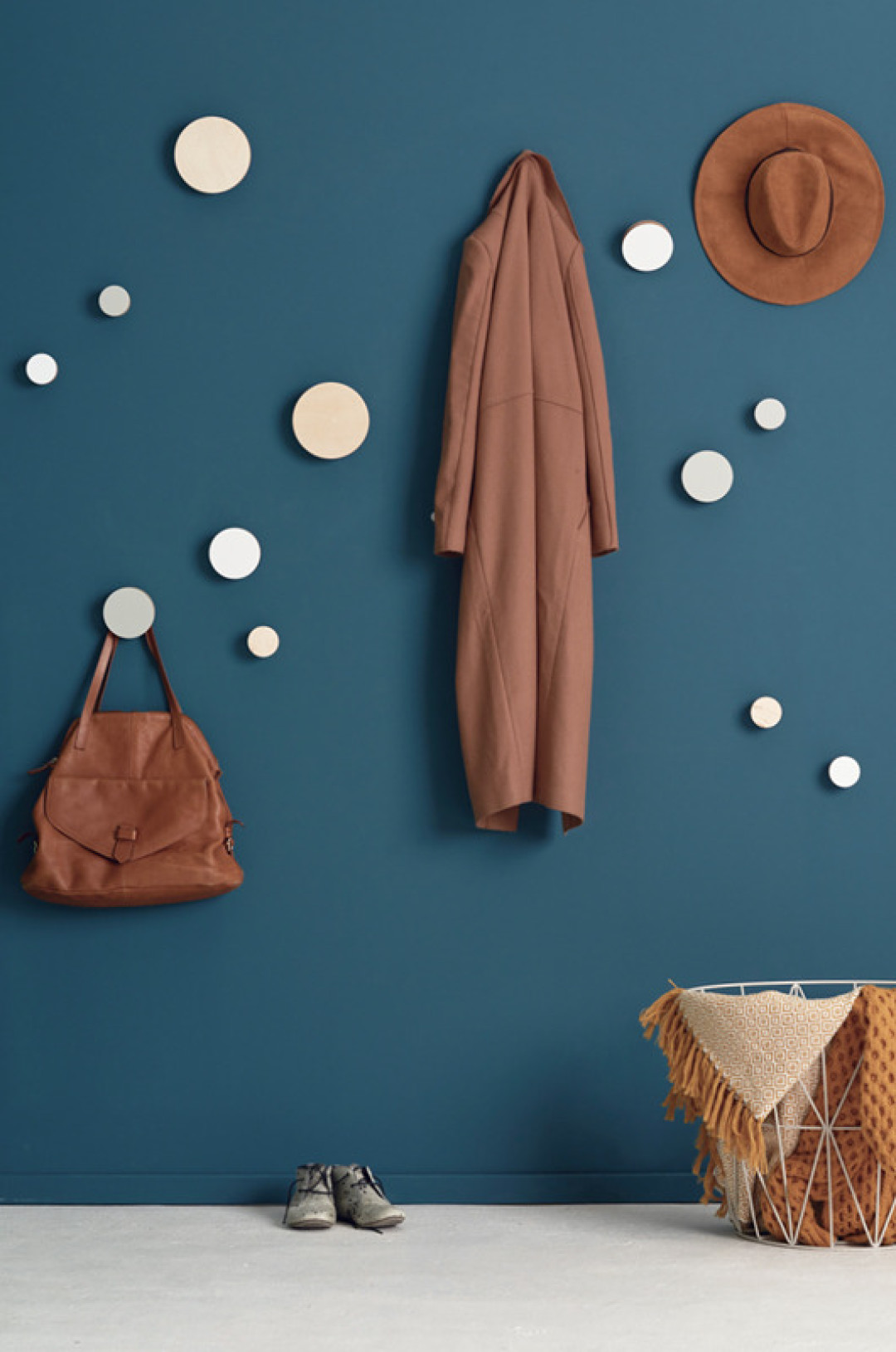 Настенные крючки подходят не только для хранения ключей, зонтов и платков в прихожей. Ими можно оформить всю стену, чтобы оставлять на них сумки, одежду, головные уборы. К тому же такая стена может стать интересным интерьерным акцентом.