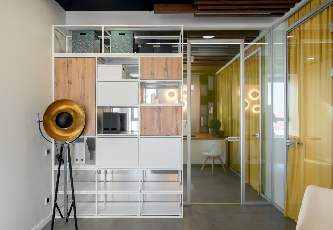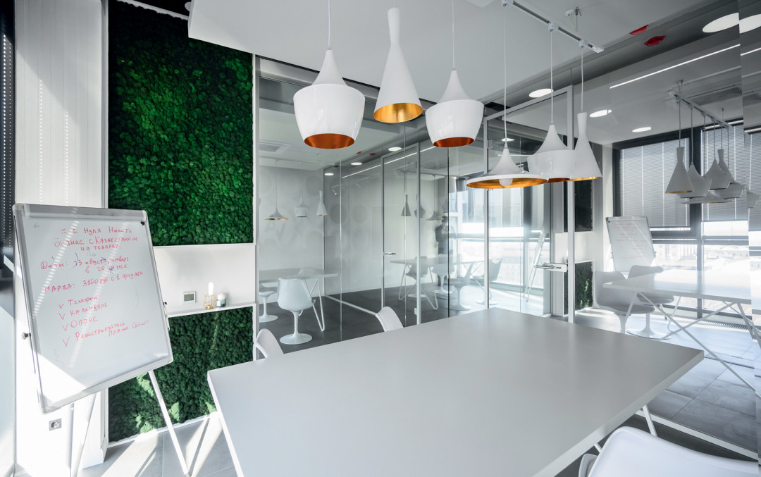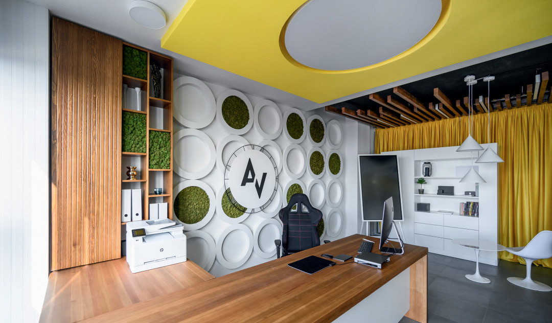Перед дизайнером была поставлена задача – сделать пространство светлым, ярким, запоминающимся и космическим. По-другому и быть не могло, ведь владелец этого офиса мыслит глобально. Сабина сделала ставку на функциональность, комфорт, техническое оснащение и некую футуристичность во внешнем виде.