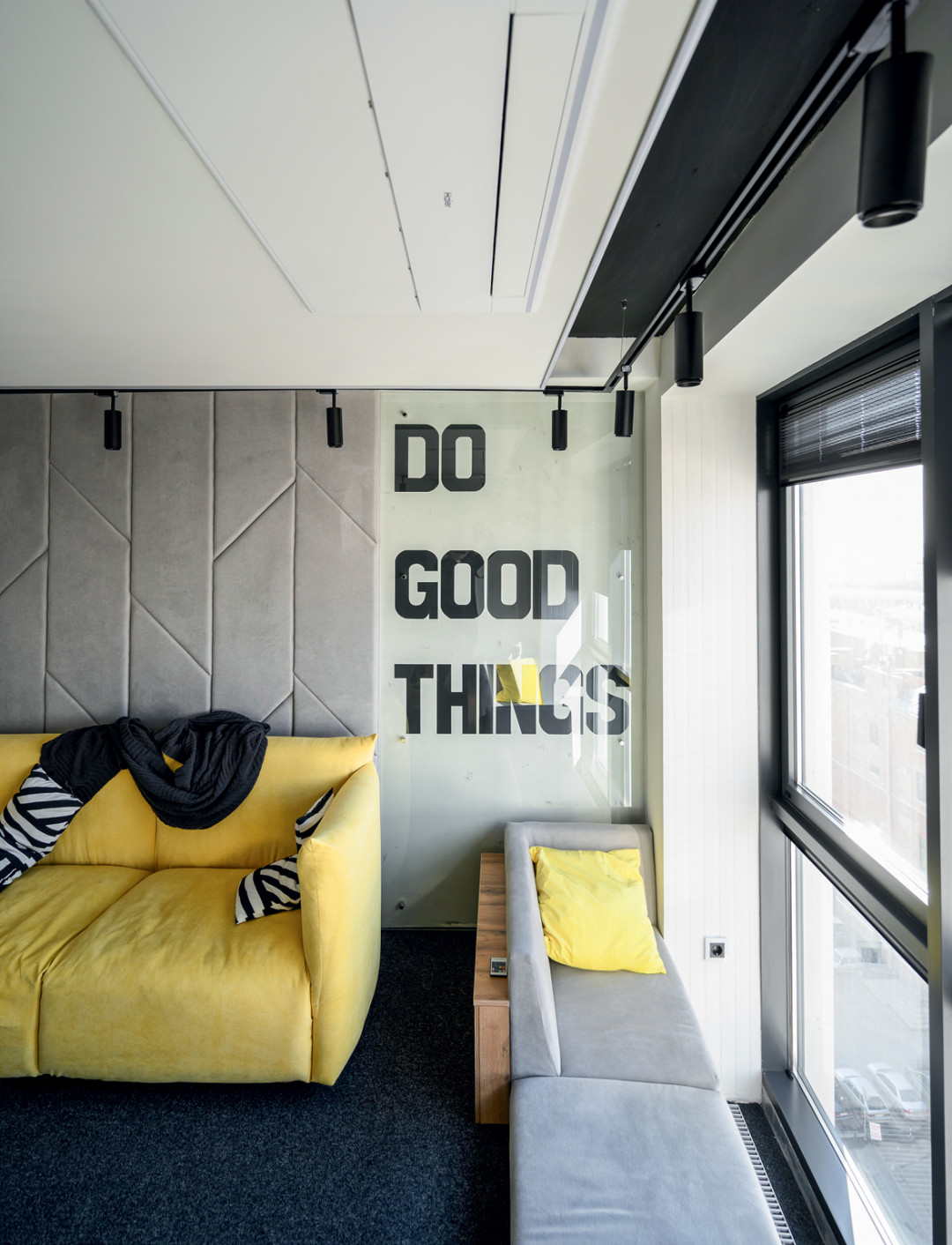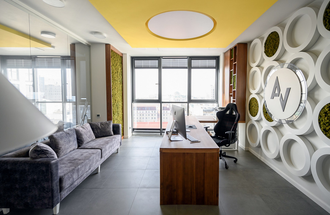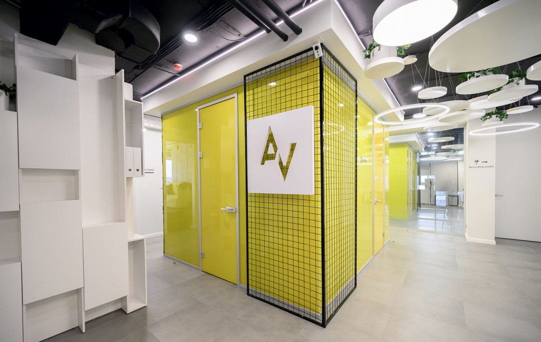 Так в пространстве появились: кабинеты руководителей, рабочая и съемочная зона, переговорная, собственная звукозаписывающая профессиональная студия, лаунж-зона, кухня и санузел.
