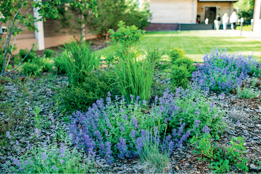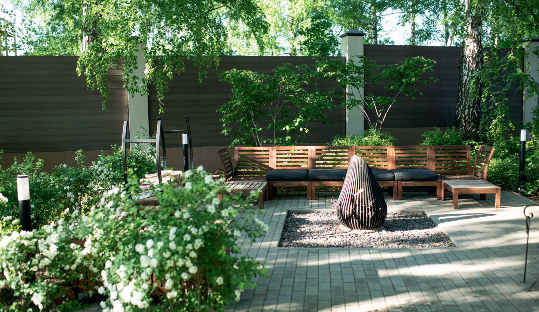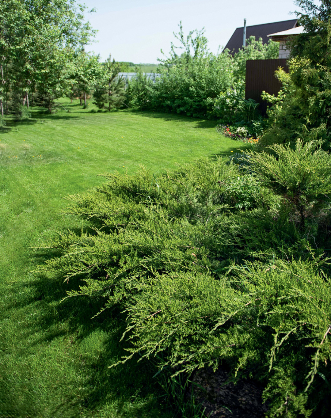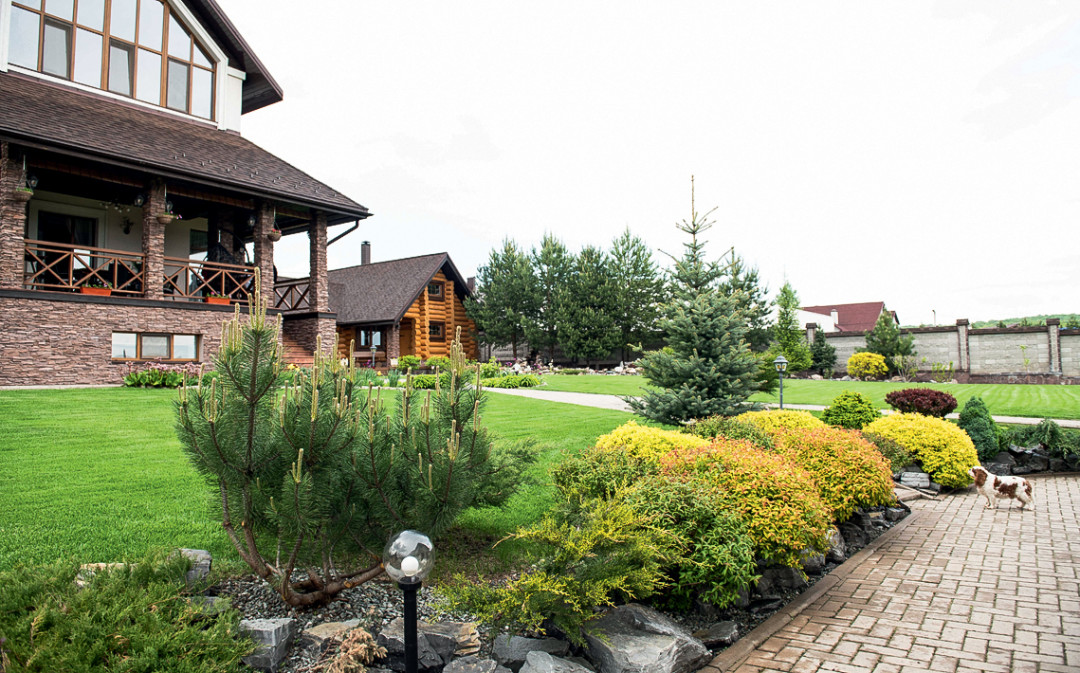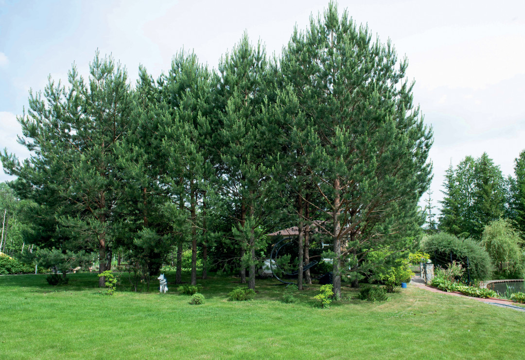 Предпочтение отдано кустарникам, почвопокровникам, соснам, которые растут вдоль забора, играя роль естественного ограждения