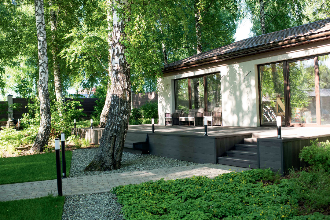 Именно так назвала этот проект ландшафтный дизайнер. Главной задачей при зонировании территории в 30 соток было сохранить крупные березы, которые представляют собой часть естественного леса, и в целом продолжить лесную тематику, заданную природой.