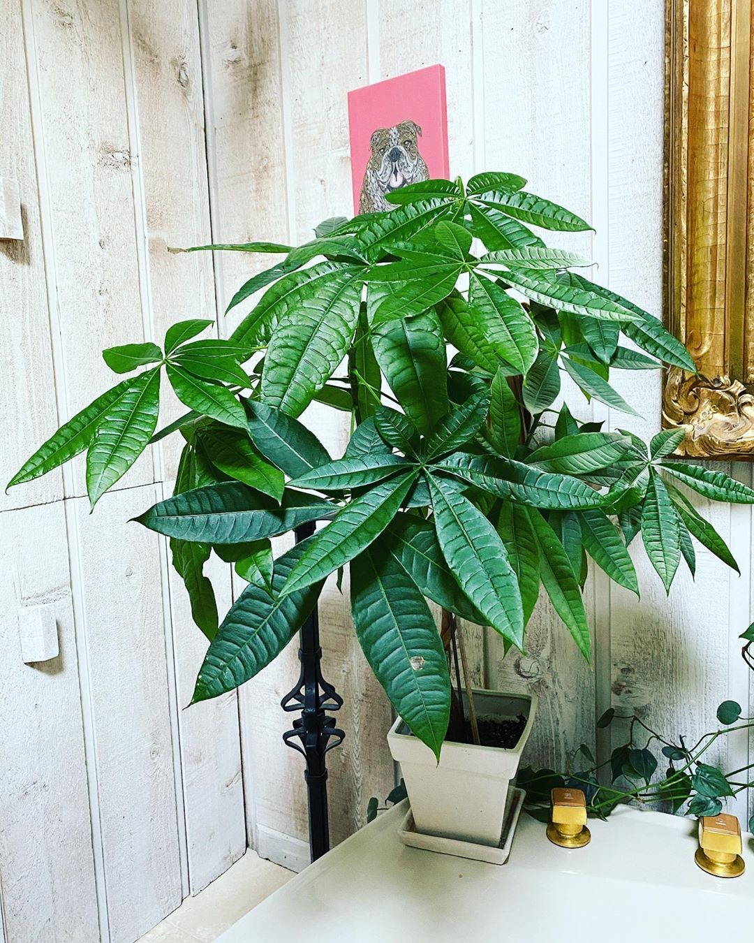 Декоративно-лиственный тропический крупномер из семейства мальвовые родом из Южной Африки и Индии. Пахиру можно поддерживать в форме бонсая или дать ей вырасти в раскидистое дерево высотой до трех метров. Еще интереснее высаживать совсем молодые сеянцы в один горшок и переплетать их гибкие стволы, пока они не одеревенели. За три года сформируется композиция с короткими и пышными пучками зелени на конце стеблей. Растение хорошо приживается в комнатных условиях, но заставить его цвести крайне сложно. Впрочем и без того пахира эффектно смотрится в современных интерьерах. Она предпочитает полутень и умеренную влажность. Избытка влажности не переносит.