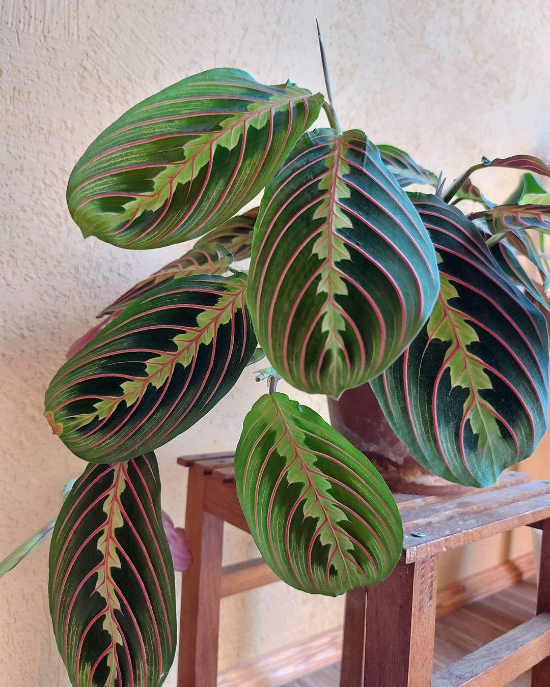 Неприхотлива и идеальна для вертикального озеленения, которое способно заменить собой дорогие обои или закрыть дефекты стен. Быстро увеличивается в размерах, прекрасно размножается и длительное время цветет в домашних условиях. Ценится за красивые крупные листья, которые бывают двух- или трехцветными. Весной цветет небольшими белыми и светло-сиреневыми цветками. Чтобы хорошо расти, маранте требуются умеренная температура воздуха и регулярный полив. В летнее время лучше ставить ее на восточную или западную сторону и затемнять.