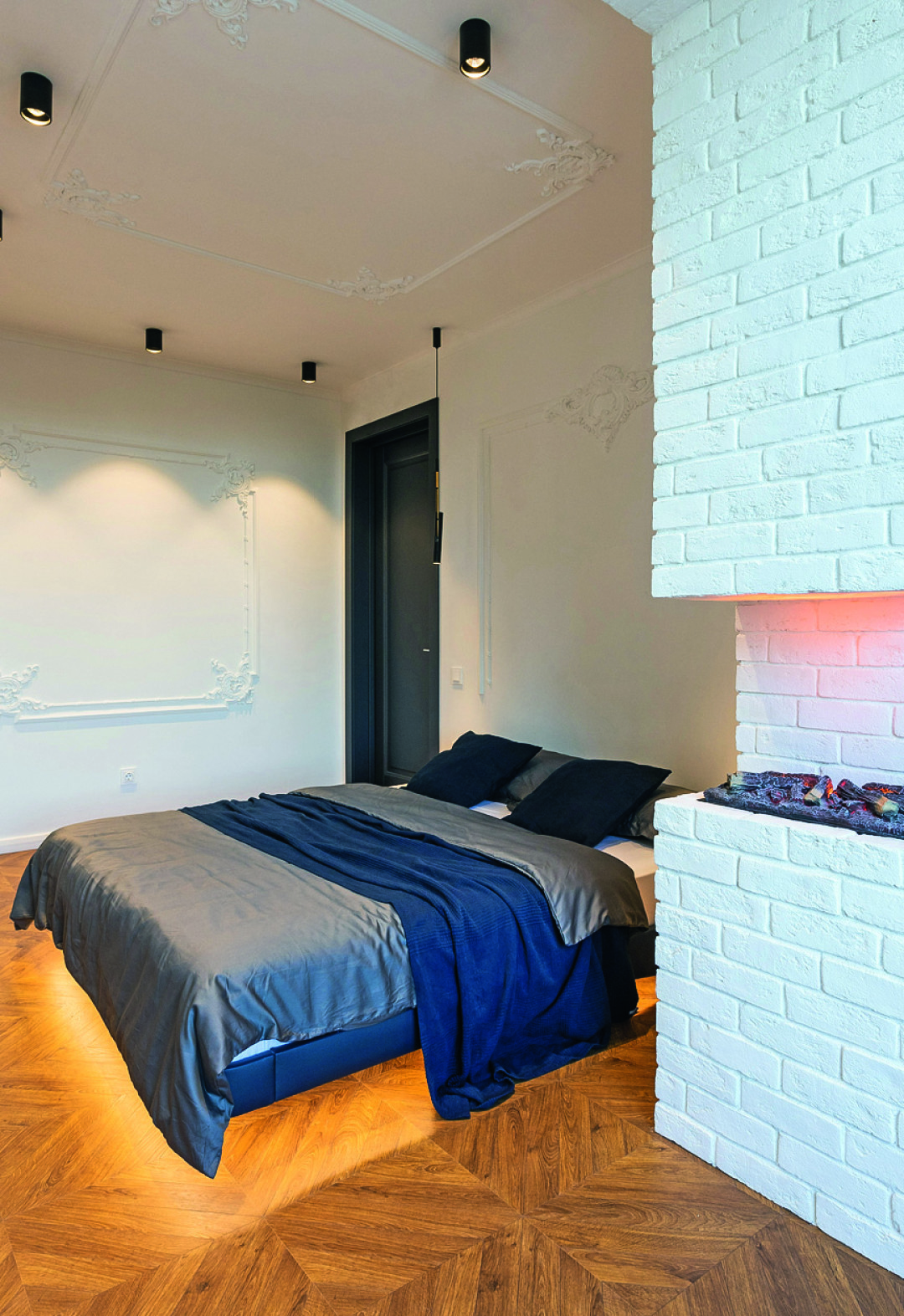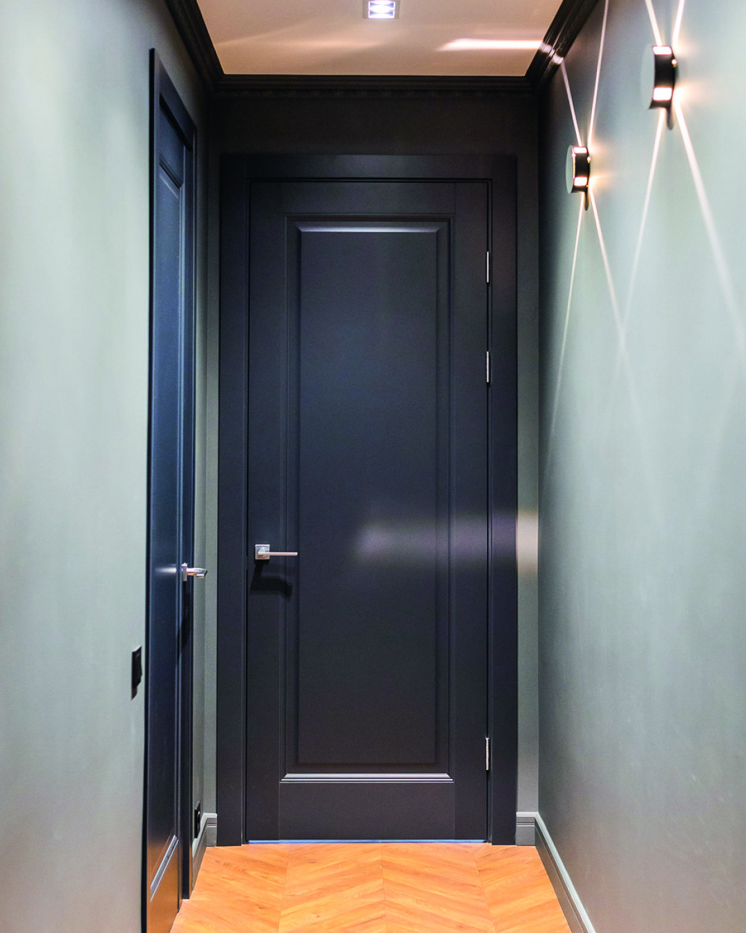 К такому фону идеально подошли межкомнатные двери от фабрики Profil Doors, подобранные в салоне Planeta Doors, а также ламинат из коллекции Skara Pro фабрики Pergo. Напольное покрытие помогли подобрать специалисты салона «Олимп паркета».