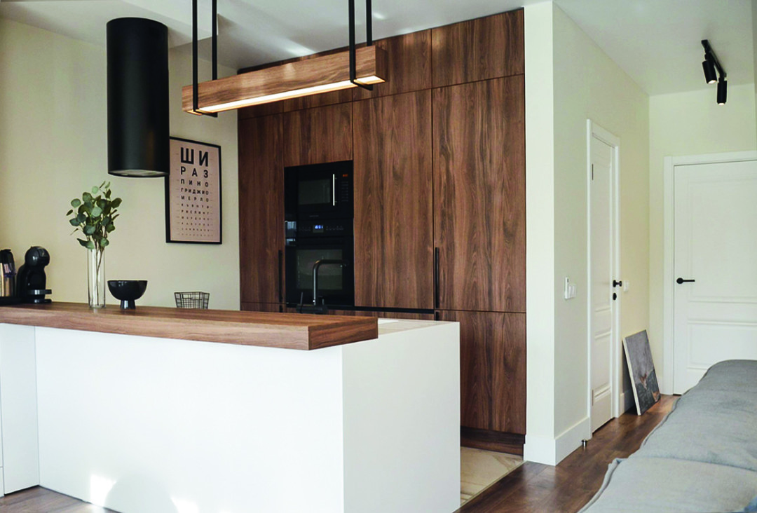 Хозяева квартиры, молодая семья, хотели получить лаконичный интерьер в современном стиле с акцентом на текстуры природных материалов. Вместе с владельцами основными оттенками в интерьере мы выбрали теплый белый, черный, а также текстуры дерева и бетона – такое решение всегда будет актуальным, и оно отвечает настроению, которое задает расположение дома на лоне природы. При выборе отделочных материалов и мебели стремились подчеркнуть индивидуальность и лаконичность интерьера. Качество также было ключевым требованием.