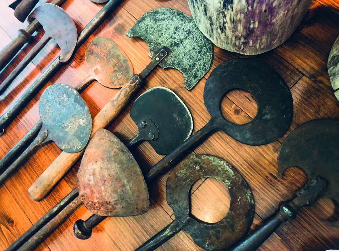 Кроме этого, у меня есть еще и собрание сечек, которыми рубят капусту: штук пятьдесят. Я их, как и утюги, покупаю. Мне особенно нравятся шинковки ручной работы: какая фантазия была у мастеров того времени!