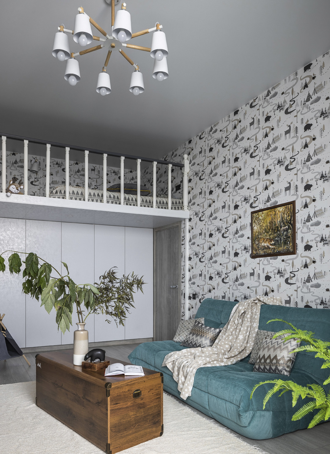 Отдельного упоминания заслуживает детская. Родители хотели, чтобы спальная зона была отделена от игровой. Поэтому мы подняли ее на «второй этаж» – благо высота потолков в квартире 3,5 метра. Получилось стильно, удобно, а сами дети остались в восторге.