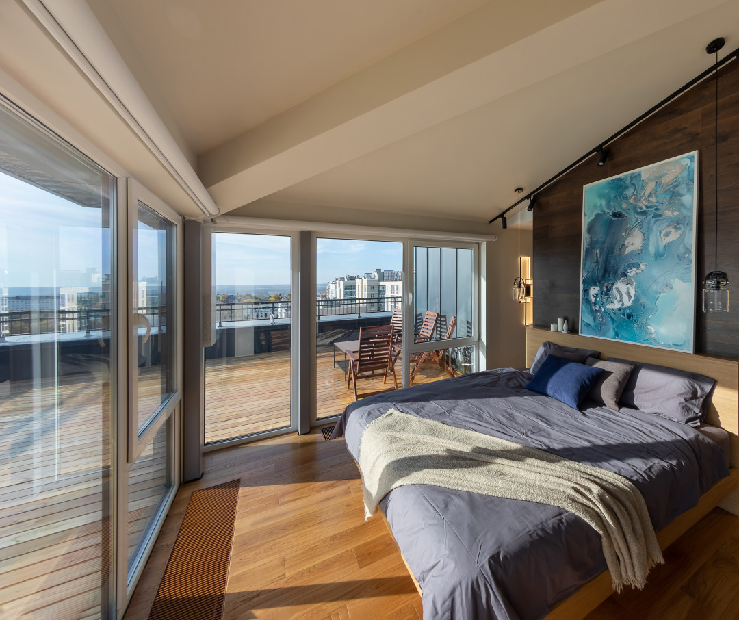 Еще одна фишка проекта – система вентиляции. Воздух, поступающий с улицы, проходит через фильтры, очищается и ионизируется. Когда уровень кислорода в помещении снижается, система включается автоматически. Это обеспечивает легкое засыпание и позволяет избежать кислородного голодания по ночам. К тому же, не нужно открывать окна, чтобы проветрить комнаты, поэтому в них всегда тихо.