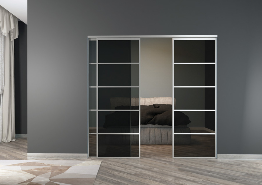 Очень стильное решение: алюминиевая конструкция с фрамугой. Она легко впишется в любой интерьер с эстетикой минимал, будь то лофт, сканди или эко. При помощи раздвижной перегородки можно быстро и легко зонировать пространство: отделить спальную зону от кабинета, гостиную от кухни, гардеробную от детской.