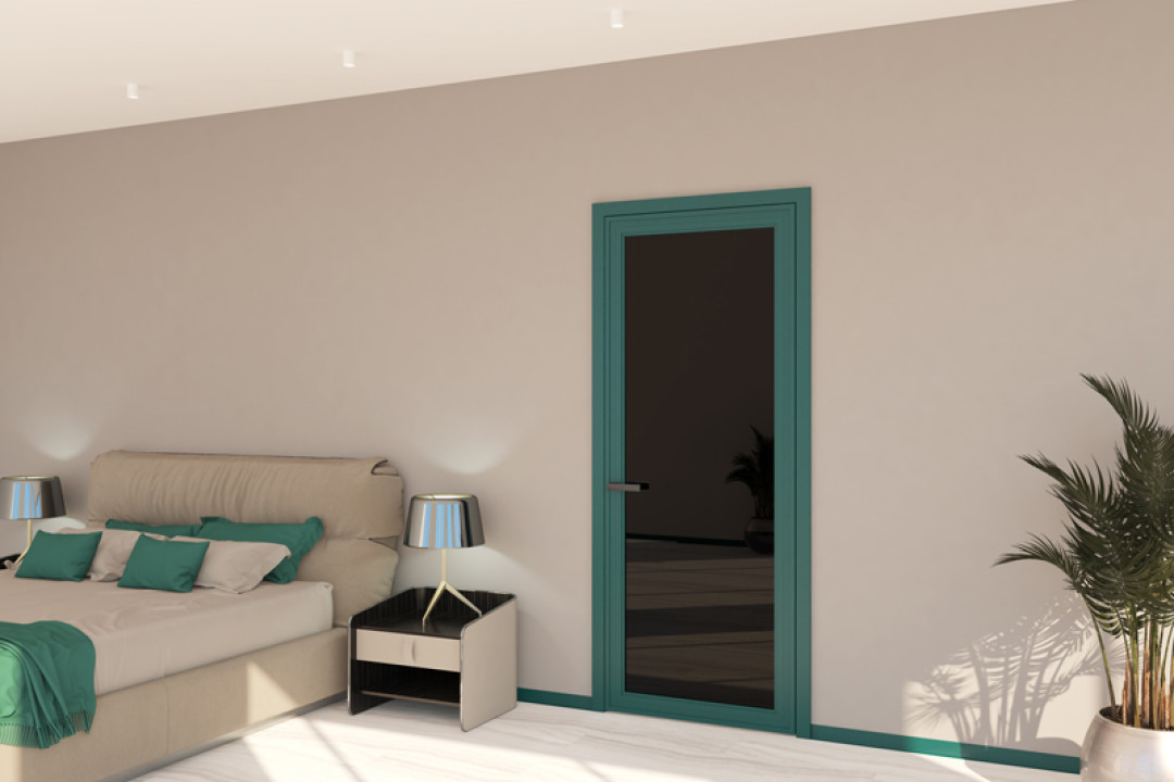 Мы привыкли, что межкомнатные двери либо сделаны «под дерево», либо выкрашены в однотонный темный или светлый цвет. Но если взглянуть на вещи шире, то можно подобрать более нетривиальный оттенок – такой, который заставит интерьер заиграть по-новому. В ProfilDoors представлена линейка алюминиевых дверных полотен в разных цветах: золотом и матовых – зеленом, синем, черном и белом.