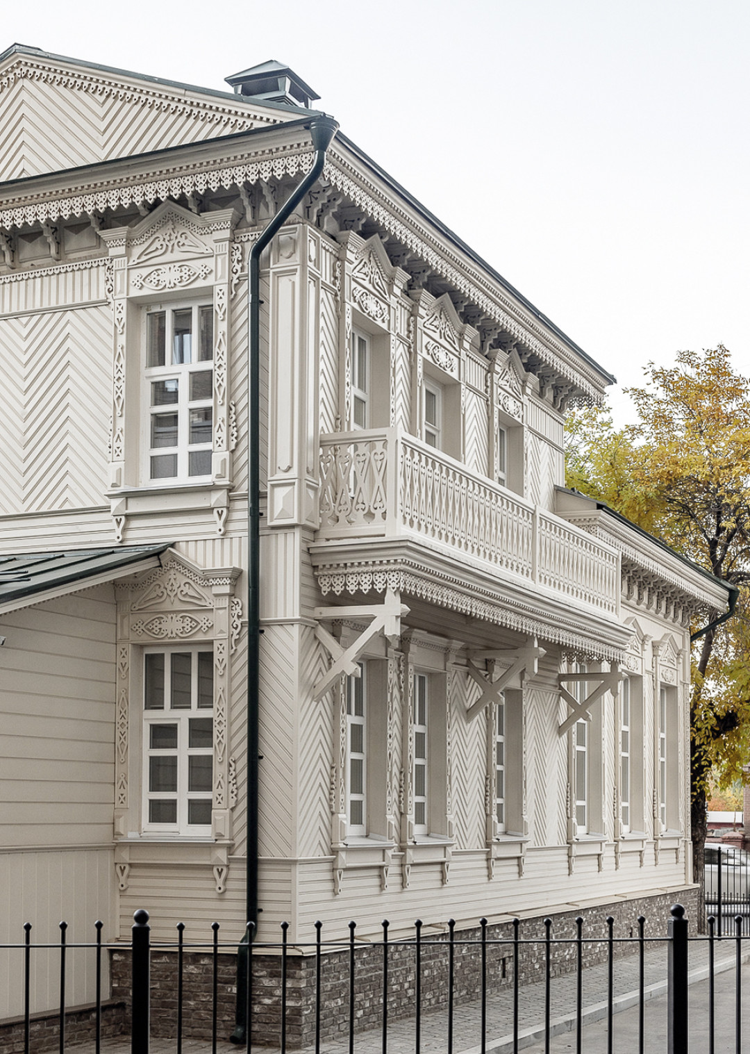К историческому прошлому здания, построенного в 1913 году на перекрестке улицы Ленина и бульвара Ибрагимова, команда архитектурного бюро отнеслась с большим уважением. Так как особняк был под охраной как объект культурного наследия, решено было максимально сохранить не только его внешний вид, но и интерьерные особенности.