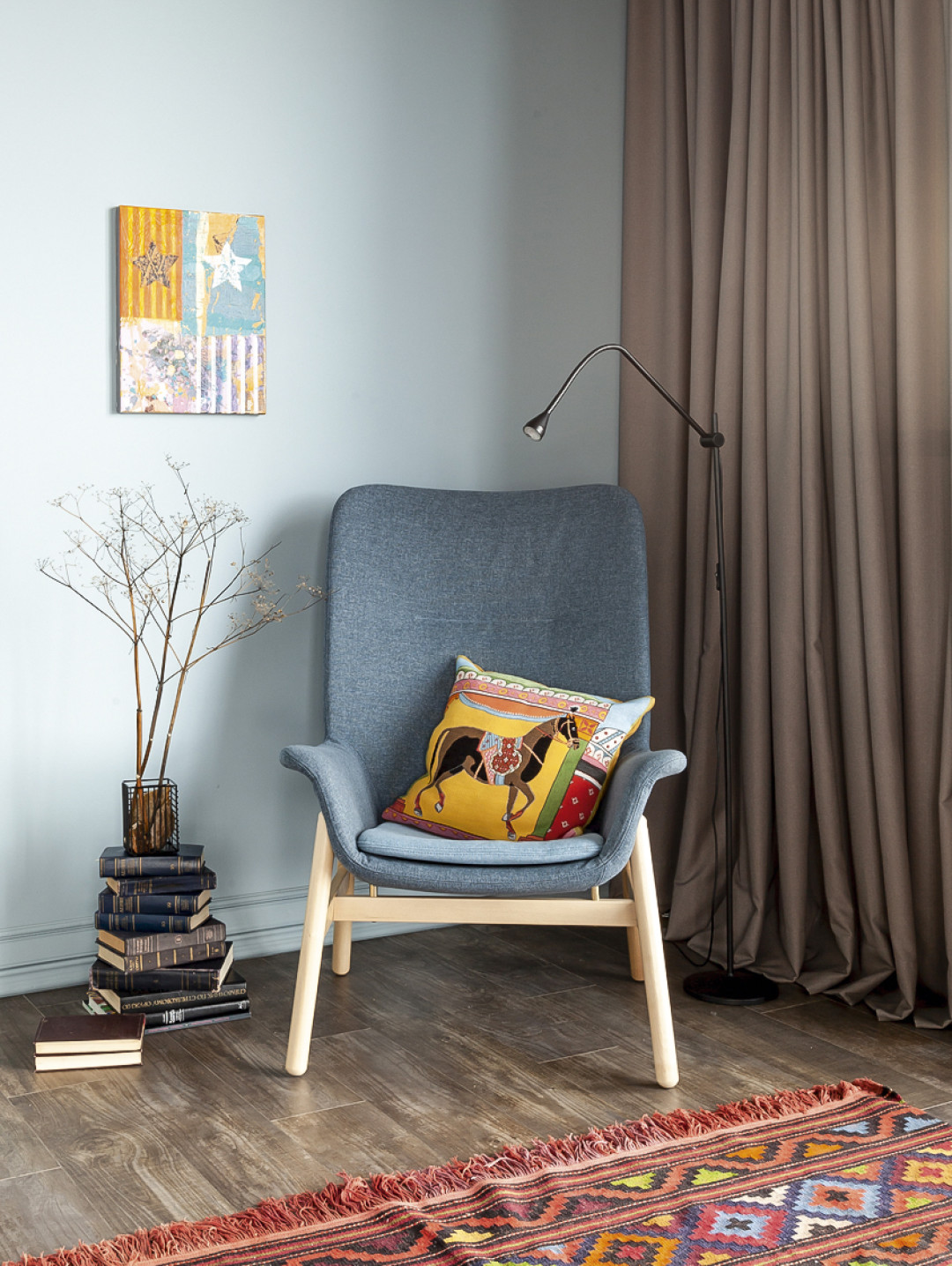 Основан он на смешении стилей, миксе культовых предметов дизайна и предметов, привезенных с блошиных рынков Москвы, Парижа, Стамбула и Праги, игре цвета, хорошем текстиле и обязательно – добавлении в интерьер предметов искусства. В этом проекте мы сделали то же самое. Надо сказать, мне очень повезло с заказчиками: ими стала молодая пара с тремя детьми. Это очень интересные люди, умные, прогрессивные, с отличным образованием и широким кругозором. Они много путешествуют и разбираются в современном дизайне. Я получила от них полный карт-бланш на реализацию идей.