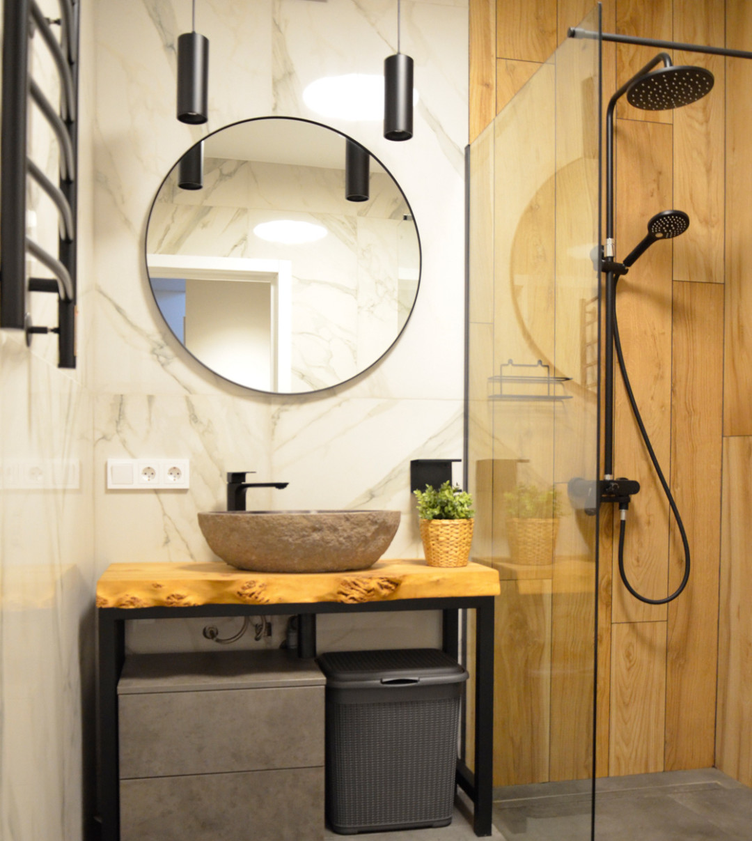Основная идея моих проектов – гармония интерьера с окружающей средой. Дома должно возникать такое же ощущение, какое бывает, когда мы отправляемся в первые теплые весенние дни на природу. Что мы чувствуем в такие моменты? Спокойствие и гармонию, ощущение, что все проблемы позади, а мы в полной безопасности. Это состояние я создаю с помощью натуральных материалов. К примеру, предлагаю раковины из натурального речного камня или столешницу из массива дерева. В цветовой гамме предпочитаю использовать древесные и пастельные тона, разные оттенки зеленого, синего. В качестве основы подходят белый, молочный, песочный, светло-голубой. Такие оттенки успокаивают, создают гармоничную атмосферу. При проектировании жилья в экостиле использую максимальное количество естественного освещения.