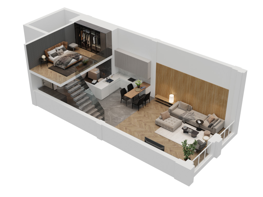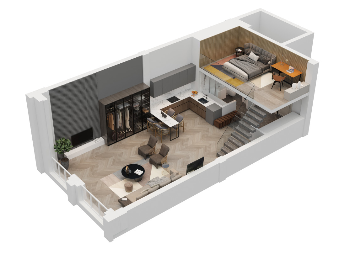 Вдохновляющее место для отдыха и простых семейных радостей не может быть компактным. В компании убеждены, чтобы жить полной жизнью, важно иметь просторное жилье, где каждый метр выполняет свою функцию. Поэтому в «Конди Нова» девелопер предусмотрел лофты площадью от 62 до 139 квадратных метров с возможностью создания антресольного этажа, где гармонично разместится спальня, кабинет или хобби-комната.