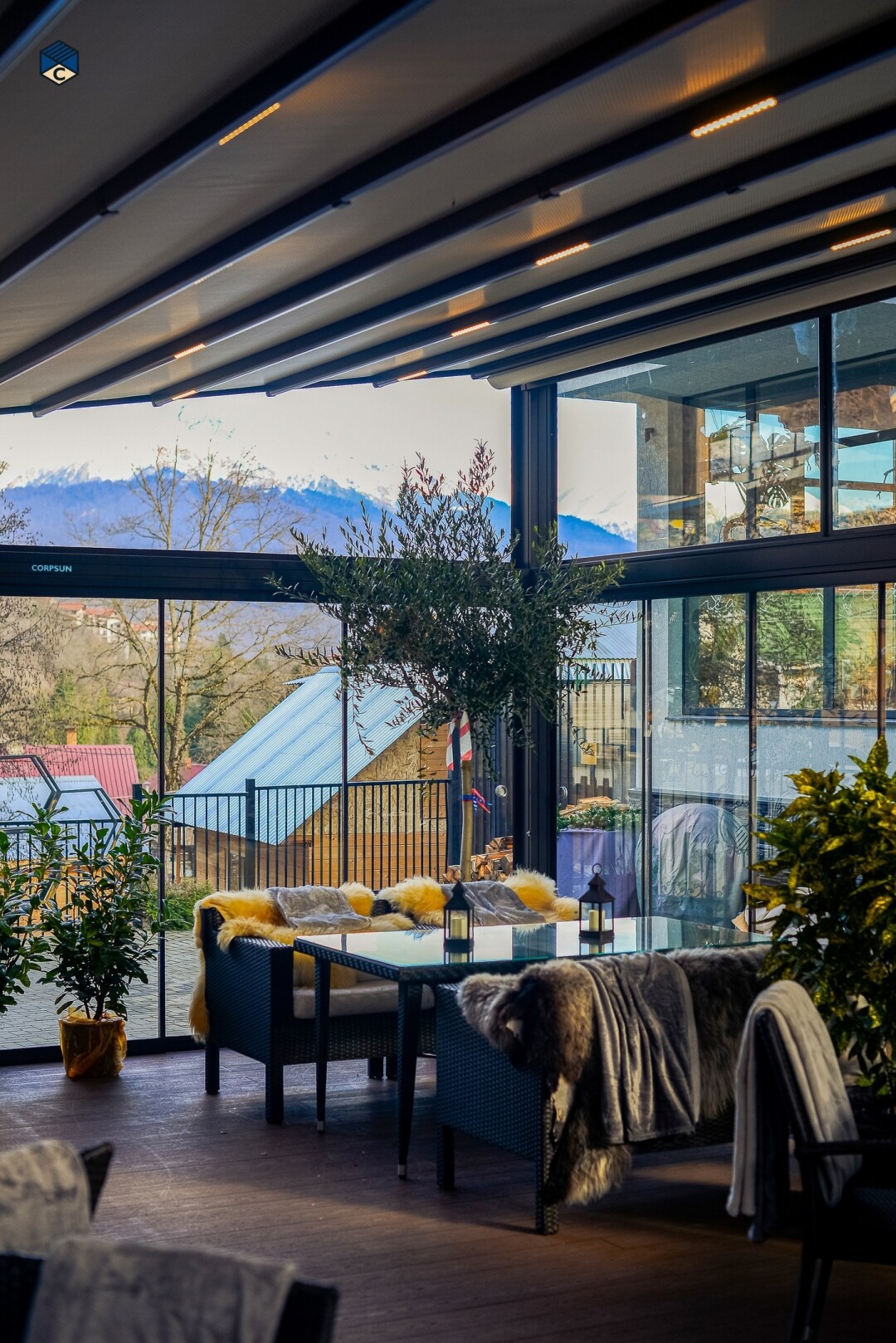 В последнее время владельцы загородных домов любят проектировать террасы с панорамным остеклением. Пространство получается легким и светлым, но порой летом хочется спрятаться от солнца. В такие интерьеры идеально вписываются жалюзи из дерева или бамбука. За счет своей натуральности, они выглядят скромно и изящно одновременно. Конструкции не загружают пространство, а также дополняют интерьер в экостиле, например кухни или гостиной загородного дома.