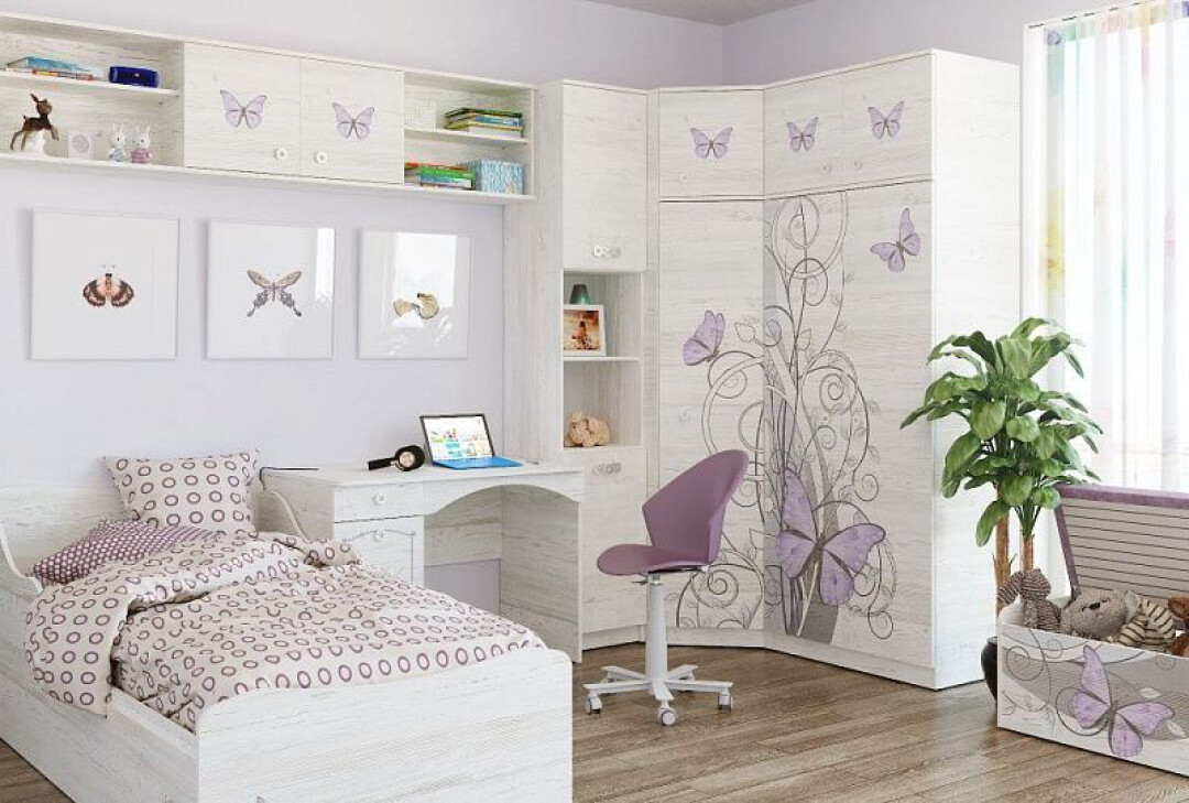 При обустройстве детской комнаты можно выбирать отдельные элементы у разных производителей или обратить внимание на гарнитур, в котором уже все предусмотрено: кровать, шкаф, письменный стол, стул и т.д.