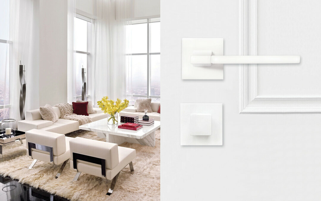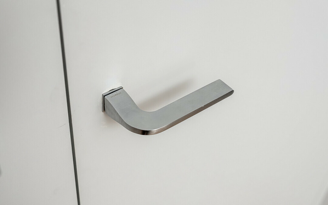 К минимализму относится, например, коллекция Morelli Eco — в ней ручки лаконичной формы и плавных запоминающихся линий таких трендовых цветов, как белый, черный, антрацит, матовый хром. Такие модели уместны и в классическом интерьере, и в лофте. Минимализм реализован не только внешне, но и в функционале и даже в габаритах. Инновационные ультратонкие накладки, запатентованные Morelli, толщиной всего 3 мм не только эффектно выглядят, но и дают новые возможности дизайнерам интерьеров: дверное полотно становится еще легче и визуально словно растворяется в пространстве. Другое минималистичное решение — коллекция Essential: ручки без накладок, абсолютно ничего лишнего — экстра-минимализм.