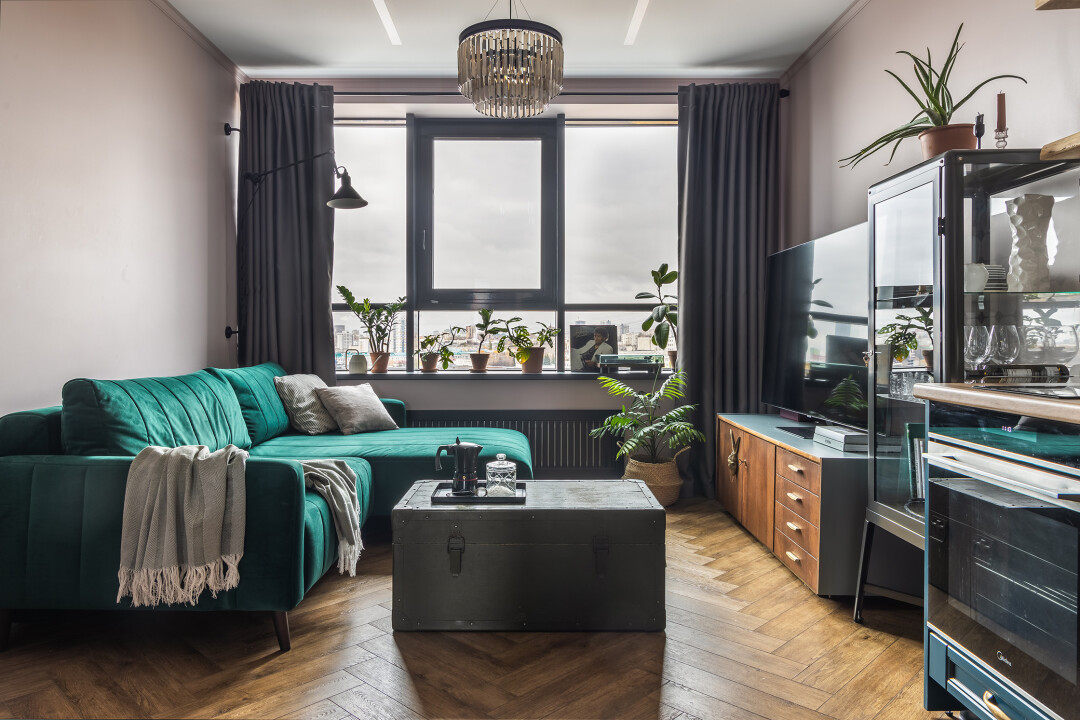 В этой квартире все прекрасно: она просторная, в ней три спальни и два санузла, но площадь кухни-гостиной всего 18 кв. м. Нужно было организовать пространство так, чтобы всем одновременно и с комфортом и готовить, и принимать пищу, и расслабляться на диване.