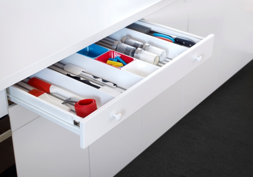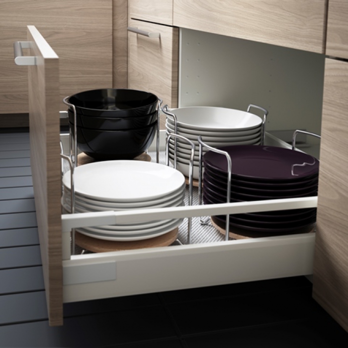 Кухня МЕТОД, больше напоминающая детский конструктор, открывает широкий простор для фантазии. Комбинации каркасов, фасадов, ящиков и полок позволяют сэкономить максимум пространства, не жертвуя при этом внешним видом интерьера в целом. Например, шкаф высотой 80 см может быть оснащен двумя ящиками по 40 см, за которыми могут быть установлены дополнительные внутренние ящики меньшей высоты.