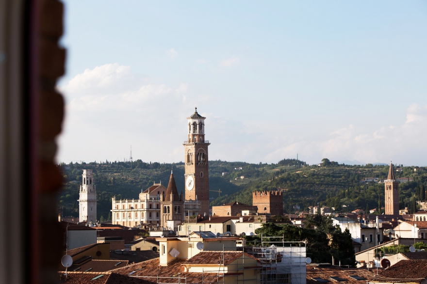 Особой любовью владельцев пользуются две террасы, площадью восемьдесят и сорок квадратных метров. На одной принято сервировать семейные обеды, на другой – проводить время за коктейлями и десертами во время встреч с друзьями. И наконец то, что подчеркивает уникальность квартиры: прямо в центре пентхауса расположилась башня с панорамным видом на город на все триста шестьдесят градусов – между прочим, одна из самых высоких точек Вероны. Франческо Маффеи использовал башню в качестве астрономической обсерватории, а сегодня хозяева предпочитают отдыхать здесь за чашечкой кофе и любимой музыкой.