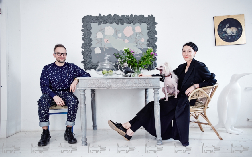 Открыв выставку в московском центре «Марс», художник Наталья Пивко и скульптор Денис Прасолов заодно открыли нам двери своей мастерской, а затем и гардероба. Мы всегда подозревали, что это не только талантливая, но и очень нарядная пара.