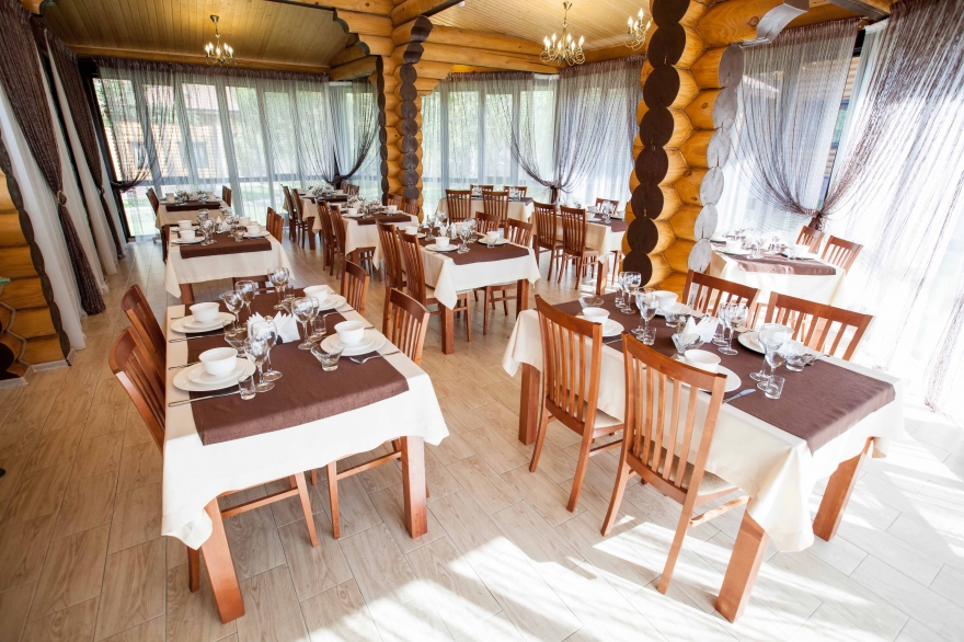 Ресторан расположен под сводом огромного деревянного купола, красивые панорамные окна которого стали визитной карточкой комплекса. На кухне шеф-повар Кирилл Гусев со своей командой создает блюда авторской кухни. Меню радует разнообразием - террин из утки с вареньем из еловых шишек, салат с мясом кабана, молодым картофелем и беконом, тыквенный чизкейк с карамелью и многое другое. Часть блюд готовится на гриле прямо в зале ресторана. Также здесь с радостью приготовят вашу дичь или улов, пойманный на просторах «Тихого берега». Особой популярностью пользуется форель на гриле, которую гости сами ловят в озерах базы отдыха.