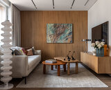 3D-панели на стене, мебель и паркет: современный фьюжн-интерьер уфимской квартиры, где много натурального дерева