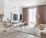 Это квартира, интерьер которой вдохновлен дорогими европейскими отелями. Дизайнеру удалось поймать тонкую грань: роскошь здесь не переходит в вычурность, а минимализм – в гостиничную безликость.