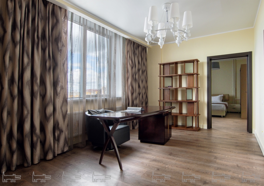Номер выбрали самый большой – площадью 150 квадратных метров. Таких в отеле всего четыре. Просторная кухня, две спальни, гардероб, две ванные и гостиная с кабинетом. В общем, проживание было очень комфортным, особенно учитывая, что отель новый, и все в номере практически не тронутое.