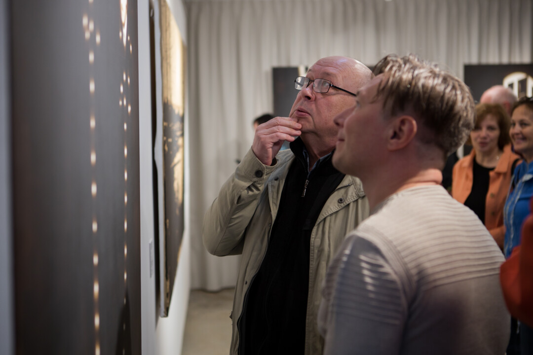 Выставку открыли Ринат Волигамси, представитель Галереи 11.12 Александр Шаров и кураторы Музея ZAMAN. Также мероприятие посетили уфимские художники, блогеры, медийные люди. Ринат Волигамси сам выбирал объекты, которые сейчас выставлены в Посольстве современного искусства. В экспозицию вошли девять его картин и работ из стали.