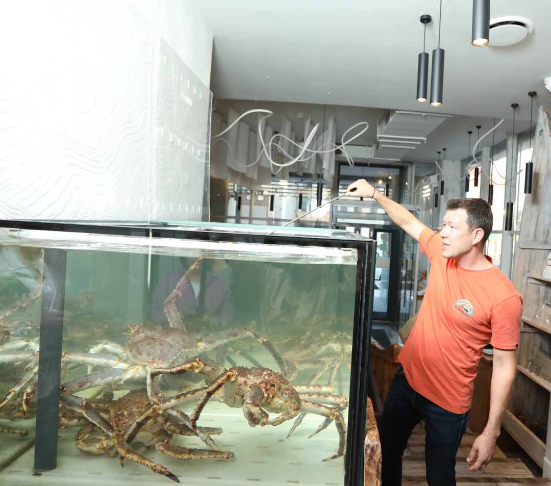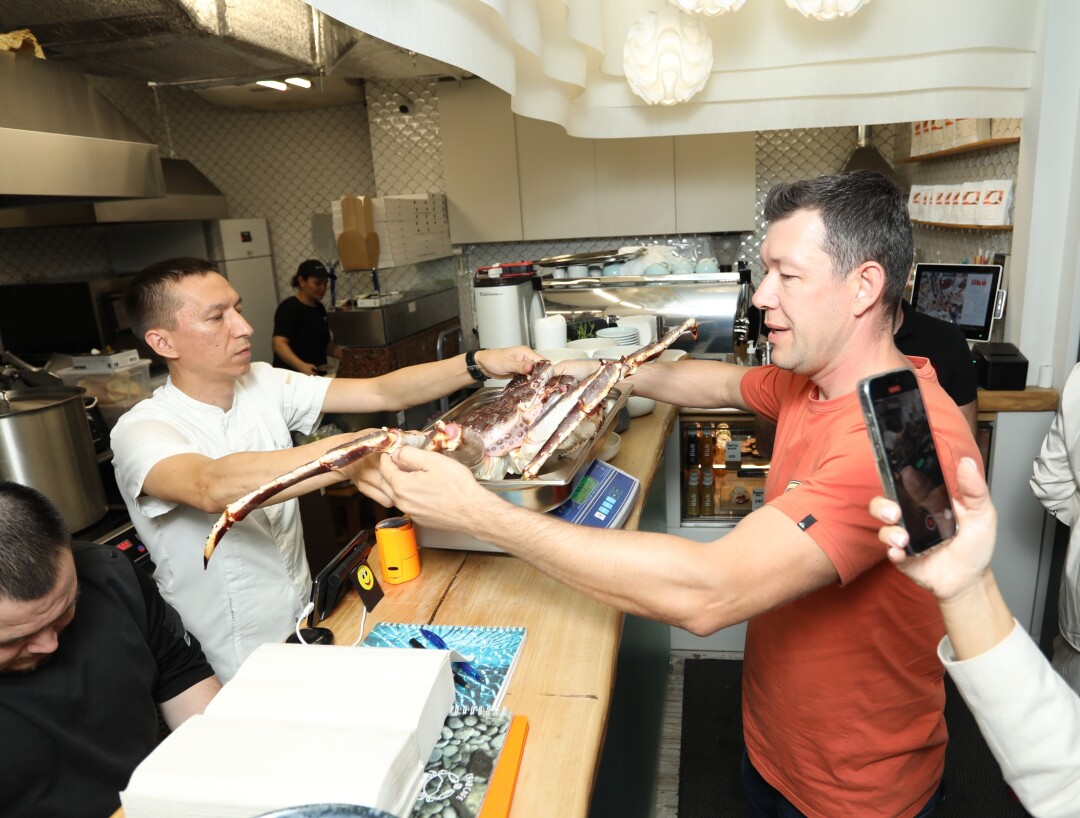 На вечере гости не только попробовали камчатского краба, но и прошли мастер-класс по его разделыванию лично от владельца ресторана Максима Мельникова.