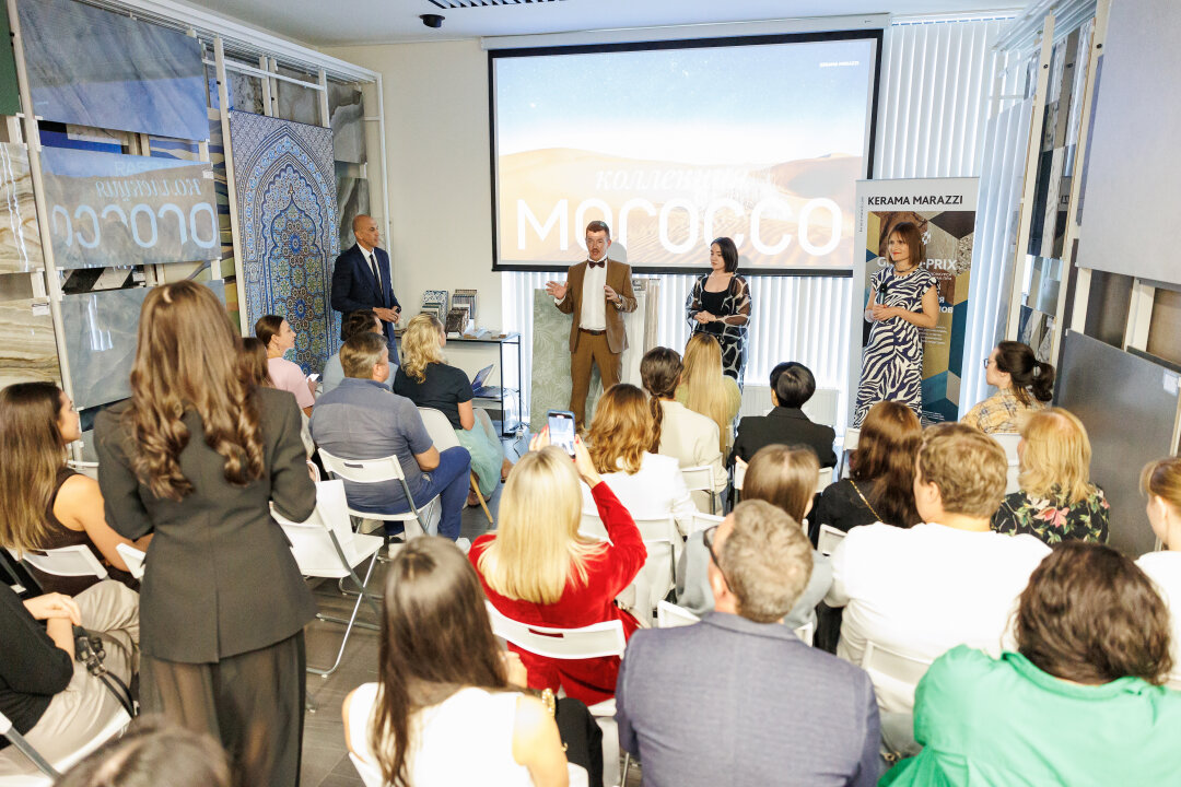 В Уфе прошла презентация интерьерной коллекции керамической плитки, керамогранита, сантехники, мебели для ванных комнат и обоев Kerama Marazzi, созданной в духе современной интерпретации восточных мотивов. Открыли ее директор по работе с проектами Альберто Фаварон и менеджер отдела развития Наталья Рашковская — они рассказали об идеях коллекции и вдохновении, которое команда бренда черпала в путешествиях по Марокко, показали фотографии древних городов, пейзажей и традиционных ремесел, что легли в основу создания коллекции Morocco. Гостями встречи стали архитекторы и дизайнеры города — именно они первыми познакомились с эстетикой новой коллекции, изучили образцы и оттенки, текстуры и узоры: от мозаики «зеллидж» до геометрических орнаментов берберских ковров.