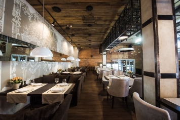 Просторный ресторан встречает гостей современным интерьером в стиле лофт, оформленным арт-объектами известного башкирского художника Наиля Байбурина. Главное здесь – кухня, которой заведует молодой шеф-повар Антон Долбнин. В основе меню – мясо и рыба, приготовленные в угольной печи, что придает блюдам аромат дымки костра.