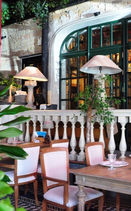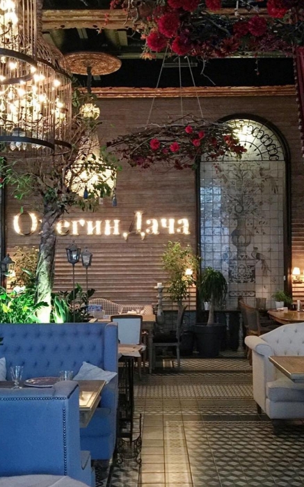Ростов и как город, и как гастролокация ошеломляет — это напоминает моменты перед концертом, когда разыгрывается оркестр: все одновременно играют что-то талантливое, но каждый — свое. Первейшая локация — зажиточный русский «Онегин. Дача» группы «Хорошие рестораны». Заведение не зря в 2016-м признали лучшим региональным рестораном России. Если бы не красный октябрь 1917-го, то так вполне мог бы выглядеть дом Евгения Онегина 1991 года рождения. Барская роскошь глубоких кресел с хрустальными люстрами — и дворянское благородство как-будто только что перелистанного тома античной литературы. Тропической пышности зимний сад — но с изящной расстекловкой окон и коваными фонарями. Стол от шеф-повара Антона Кочуры надо накрывать вневременной классикой под стать знаменитому роману — пожарской котлетой с репой, борщом с антоновскими яблоками, пирожками с ливером или грибами и сметанником с абрикосами.