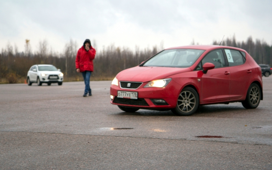 Самый азартный день – второй. Соревнования начинаются прямо на разминке. Ставим машины в два ряда напротив друг друга. Метрах в пяти от капота – конусы с воткнутыми в них палочками. Задание, казалось бы, простейшее – подъехать максимально близко к палочке, но при этом ее не коснуться. Мое расстояние – пять сантиметров (да, мне часто приходится парковаться в центре с ювелирной точностью в очень ограниченном пространстве). «Номер три, вы наш чемпион!» – слышу я по рации. Вроде бы ерундовое достижение, но как приятно! «Кто молодец? Я молодец!» – припеваю я себе под нос, благо кроме регистратора меня никто не слышит. Озвучивают результаты других участников. Пятьдесят сантиметров до препятствия, восемьдесят... Во второй группе почти все просто снесли конус. Люди, вы как паркуетесь на улицах города? Я в шоке. Но по мере повторения упражнения все улучшают свои результаты, а преподаватели усложняют задание – теперь движемся быстро! Останавливаемся резко! Змейки тоже становятся скоростными.