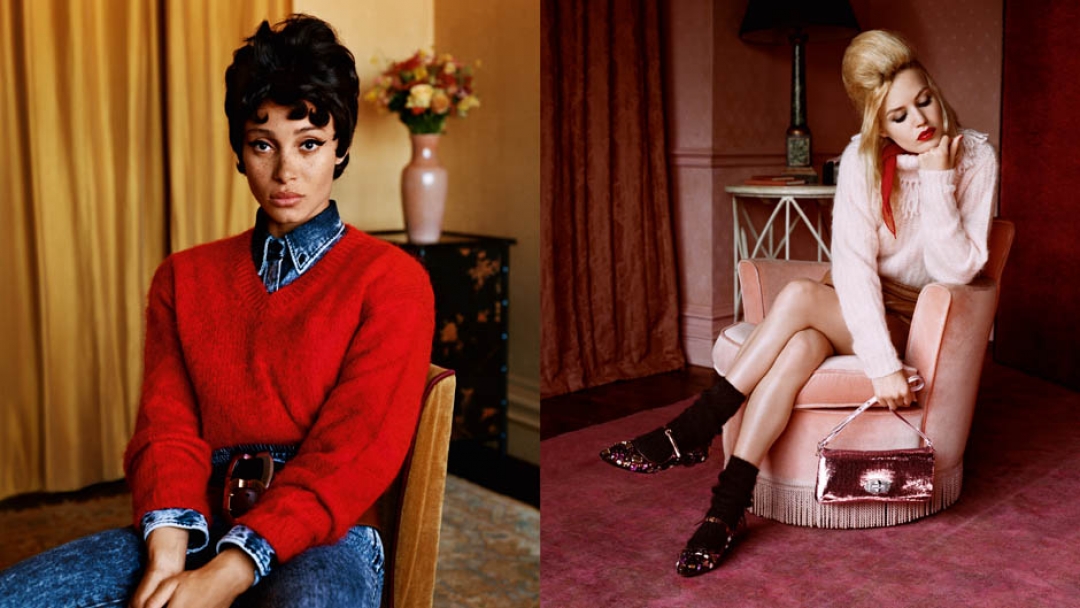 Компанию старлеткам составили хедлайнеры мартовского показа марки — Джорджия Мэй Джаггер, Зоуи Зэтс и сестры Адвоа и Кесева Абоа. Все они позируют в знаковых вещах сезона: джинсовых тотал-луках, драповых пальто, мешковатых платьях в горох и туфлях, надетых вместе с плотными носками. Референс к 80-м довершают прически как у Синди Лопер и Бонни Тайлер, про которые сама марка говорит: «В фильме "Стальные магнолии" Долли Партон объясняет "чем выше прическа, тем ты ближе к Богу". Но что если она не права? Если плохие девочки тоже хотят носить высокие прически?».