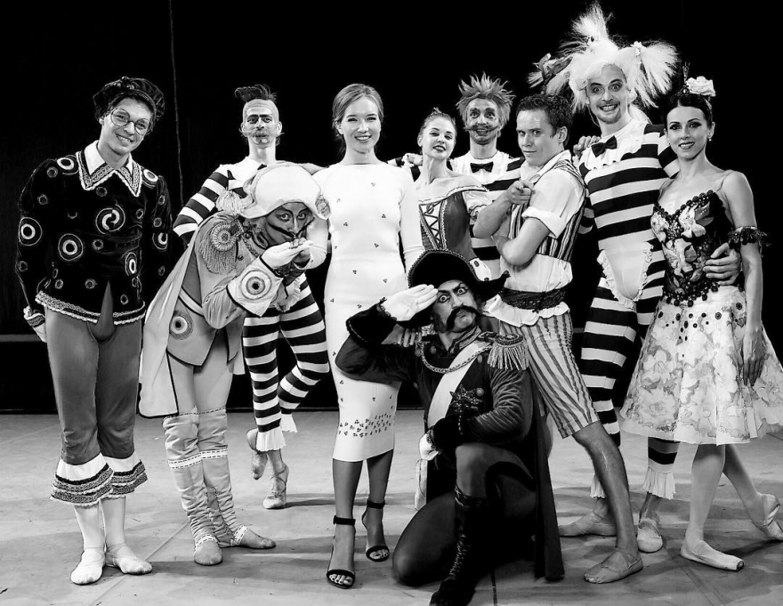 После церемонии повенчанная пара и гости отправились в Михайловский театр, где в этот вечер шел показ балета «Чиполлино» Карэна Хачатуряна. Напомним, несколько лет назад Владимир Абрамович именно в этой постановке оттачивал свои театральные навыки — директор Михайловского театра сам исполнил роль Принца Лимона на сцене, тогда компанию ему в роли Редисочки составляла Елена Образцова.